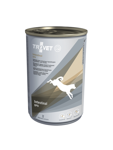 Hrană dietetică completă, hipoalergenică, pentru câini cu tulburări gastro-intestinalenIntestinal este o hrană dietetică completă pentru câini pentru a susține tractul gastrointestinal. Utilizarea cartofului ca sursă de carbohidrați face ca acest aliment să fie foarte digerabil, iar adăugarea de fibre fermentabile și nefermentabile promovează un tract gastrointestinal sănătos.nÎn plus, numărul de ingrediente folosite este cât mai mic posibil, pentru a menține stresul asupra tractului digestiv scăzut și pentru a minimiza riscul unei reacții alergice. Intestinal conține rața ca singura sursă de proteine animale. Rața este cunoscută pentru că este o sursă de proteine care rareori provoacă reacții de hipersensibilitate. Acest lucru face ca dieta să fie potrivită pentru câinii cu hipersensibilitate alimentară.nIndicatii:nnTulburări gastrointestinalenDiaree, colită, enteritănAlergie la mancarenIntoleranță la mâncarenCatei, cu excepția cățeilor de rase mari; vezi contraindicatiinnContraindicatii:nnHipersensibilitate la proteinele de rațănPui de talie mare, sub 12 luninnCaracteristicile produsului:nnHrană dietetică hipoalergenică bazată pe o sursă de proteine animale (rață) și o sursă de carbohidrați (cartofi).nPrevine reactiile imunologice (alergia alimentara) sau reactiile neimunologice (intoleranta alimentara) sub forma unor probleme ale pielii si/sau probleme digestive (diaree, varsaturi).nTrecerea la o dietă hipoalergenică va ajuta la reducerea lenta a mâncărimii. Acest lucru reduce zgârierea, frecarea și mușcătura, ceea ce ar putea provoca leziuni secundare ale pielii.