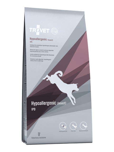 Hrană dietetică completă, ușor digerabilă pentru câinii adulți cu hipersensibilitate alimentarănHypoallergenic (Insecte) este o hrană dietetică hipoalergenică completă special formulată pentru câini cu simptome de hipersensibilitate alimentară. Hipoalergenic (insecte) se bazează pe o sursă unică de proteine animale (larvele Black Soldier Fly) și o sursă de carbohidrați (cartofi). Insectele aparțin nevertebratelor. O reacție alergică încrucișată între proteinele de la vertebrate și nevertebrate nu este posibilă. Insectele utilizate în acest produs sunt o sursă durabilă de proteine.nIndicatiinnAlergie la mancarenIntoleranță la mâncarennContraindicatiinnHipersensibilitate la proteinele insectelornAlergia la crustaceenCatelusinnCaracteristicile produsuluinnHrană dietetică hipoalergenică bazată pe o sursă de proteine animale (insecte) și o sursă de carbohidrați (cartofi).nPrevine reactiile imunologice (alergia alimentara) sau reactiile neimunologice (intoleranta alimentara) sub forma unor probleme ale pielii si/sau probleme digestive (diaree, varsaturi).nTrecerea la o dietă hipoalergenică va ajuta la reducerea lent a mâncărimii. Acest lucru reduce zgârierea, frecarea și mușcătura, ceea ce ar putea provoca leziuni secundare ale pielii.
