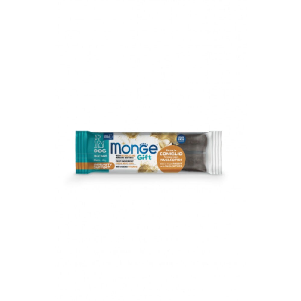 MONGE Gift Immunity Support Meat Bars with Nucleotides, XS-XL, Iepure, punguță recompense funcționale fără cereale câini, imunitate, 40g