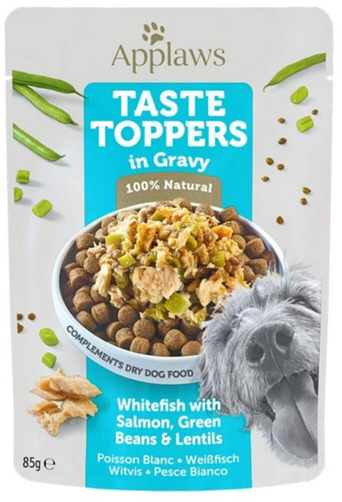APPLAWS Plic pentru câini, cu Peşte Alb, Somon şi Vegetale în Sos 85g