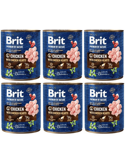 BRIT Premium by Nature chicken, hearts 6×800 g pui si inimi de pui, conserve hrana caini