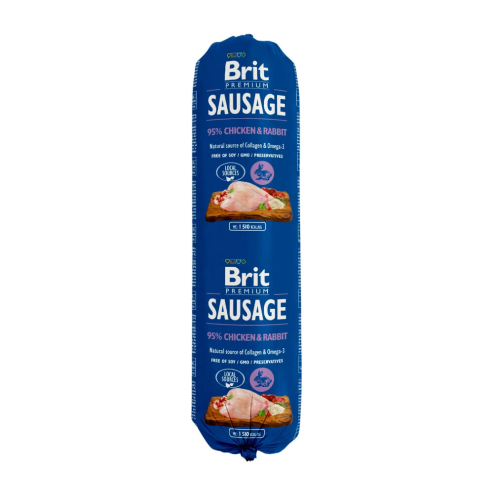 BRIT Premium, Pui și Iepure, salam hrană umedă conținut redus cereale câini, 800g