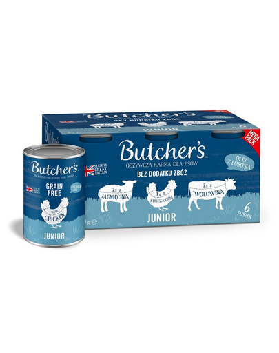 BUTCHER’S Original Junior Recipe in jelly hrana in aspic pentru catei 6×400 g bucati de miel, pui si vita