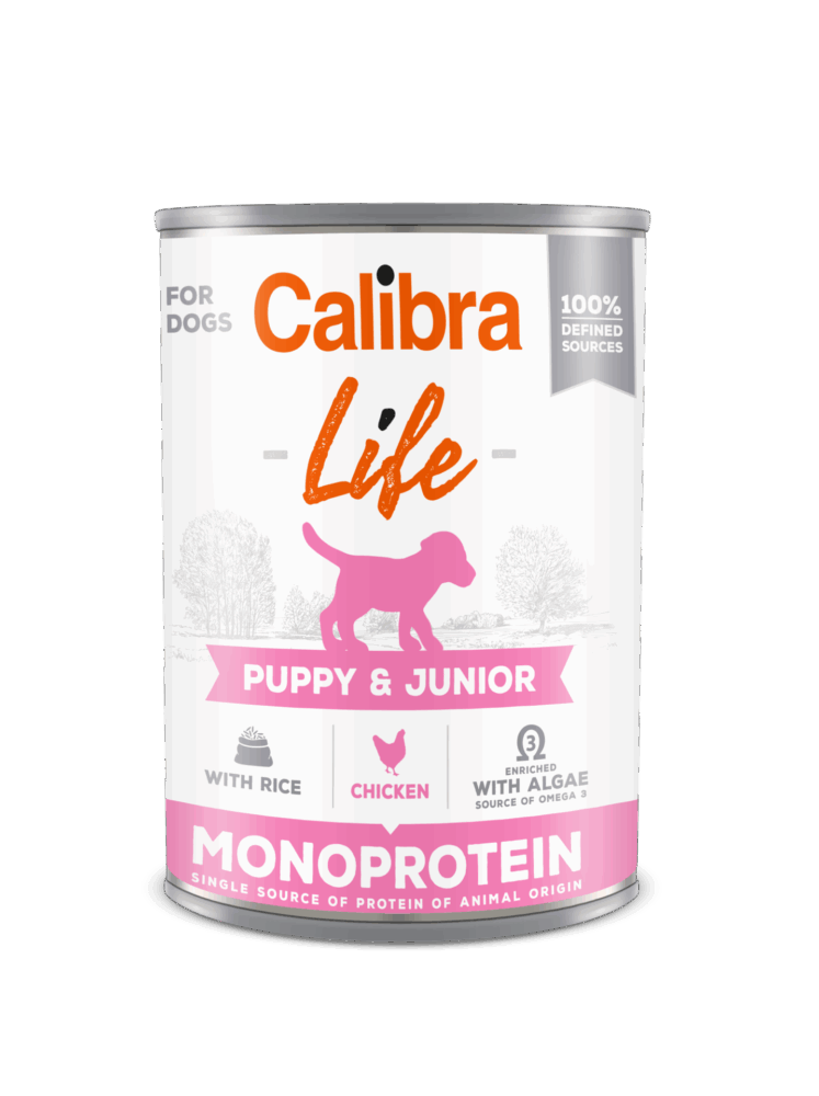 Calibra Dog Life Puppy & Junior, Chicken & Rice 400 g, conserva