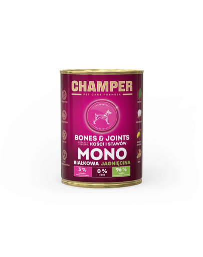 Conserva hrana caini CHAMPER Bones Joints cu miel 400 g monoproteina