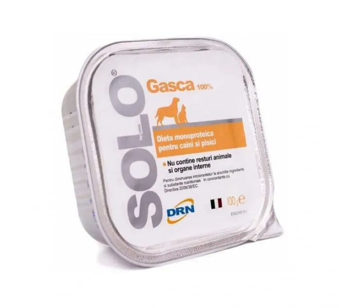 Hrana dietetica monoproteica pentru caini pisici Solo cu gasca