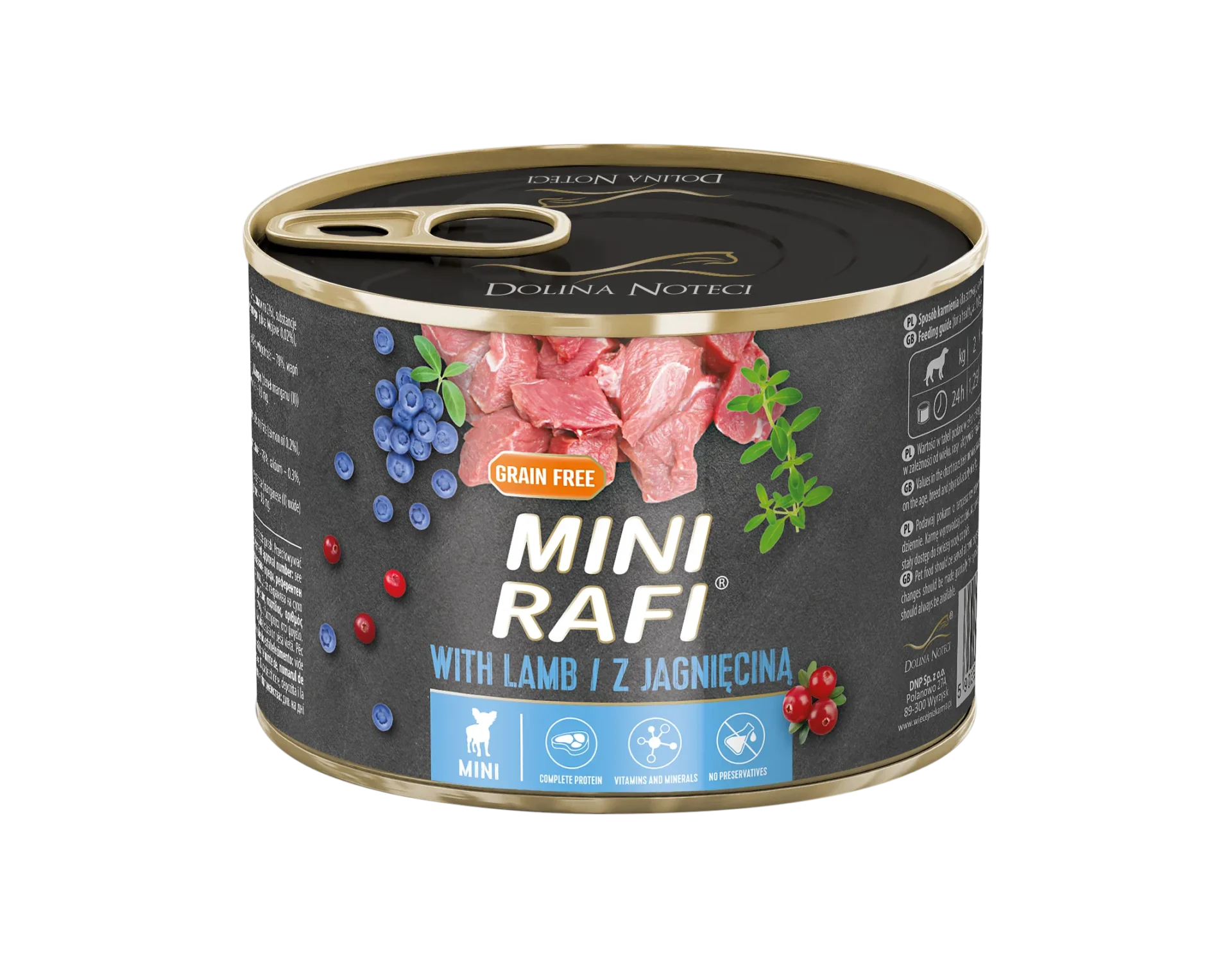 Hrană umedă completă, sub formă de pate cu miel, pentru câini adulți de de talie micănBeneficii: O porție completă de hrană pentru câinii adulți de talie mică – îndeplinește toate cerințele nutriționale ale câinilor de talie mică și nu necesită un aport de suplimente.nConține nutrienți valoroși din materii prime de origine animală.nCompoziția rețetei a fost adaptată cerințelor nutriționale specifice ale câinilor adulți de talie mică, iar digestibilitatea ridicată a acesteia asigură absorbția unui aport adecvat de proteine, energie și acizi grași.nConținutul de ulei de somon, care este o sursă naturală de acizi din familia n-3, precum și afinele și merișoarele, asigură, în plus față de furnizarea de nutrienți, faptul că ingredientele sunt bine adaptate la metabolismul rapid al câinilor adulți.nAportul de plante medicinale, cum ar fi cimbrul, îmbunătățește funcția sistemului digestiv delicat al câinilor adulți de talie mică.nConținutul de carne al acestei rețete – 65% – inclusiv miel, oferă cantitatea potrivită de proteine și acizi grași pentru sistemul digestiv al câinelui tău.nConsumul de carne de miel previne bolile cardiovasculare și, de asemenea, susține sistemul nervos prin îmbunătățirea reflexelor și a activității acestuia.nMini Rafi este alegerea ideală pentru o dietă echilibrată și variată, pentru sănătatea și nutriția adecvată a câinelui tău.