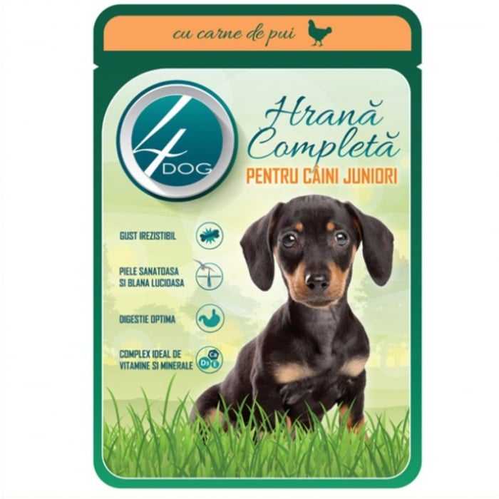 Hrana umeda pentru caini 4Dog Junior cu pui 100 gr