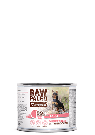 Hrană umedă pentru câini, adult, Raw Paleo Duo Protein, Porc cu Miel și Broccoli, 200g
