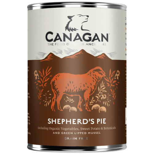 Hrana umeda pentru caini Canagan Dog Grain Free Shepherds Pie 400g – Canagan Shepherd’s Pie este o hrana completa si echilibrata fara cereale, cu legume organice, carne proaspata si minerale.Realizarea unei mese sanatoase, gustoase si hranitoare pentru cainii adulti. Aceasta reteta nu contine cereale, asa ca este perfecta daca cainele tau este intolerant la grau, porumb sau orice alte cereale. De asemenea, omitem colorantii artificiali, conservantii, aromele si indulcitorii pentru a mentine lucrurile naturale. Ingredientele noastre sunt livrate proaspete in fiecare zi si gatite cu dragoste pentru prietenii nostri speciali.COMPOZITIE:Miel proaspat preparat (65%), cartofi dulci, morcovi organici, maz?re organica, broccoli organic, minerale, midii verzi*, ulei de somon, mar organic, spanac organic, alge marine, patrunjel, yucca, macese, urzica, galbenele, ulm alunecos , Anason, Menta, Rozmarin. *Sursa de glucozamina (100 mg/kg)CONSTITUENTI ANALITICI:Proteine ??brute 10,2%Grasimi brute 7,6%Fibr? bruta 0,5%Cenusa bruta 3%Umiditate 75%ADITIVI NUTRITIVI (PER KG):Vitamina D3 200 UIZinc (sulfat de zinc monohidrat) 25 mgMangan (sulfat de mangan monohidrat) 1,4 mgIod (iodat de calciu anhidru) 0,75 mg