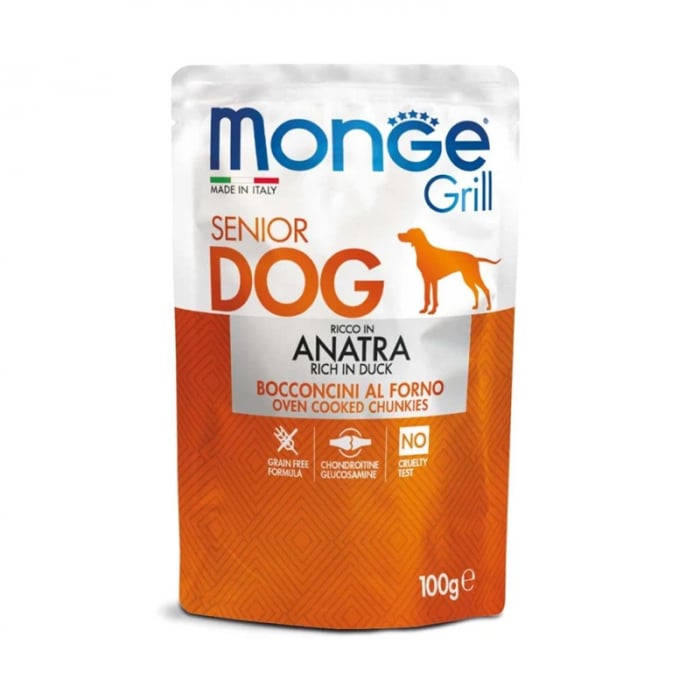 Hrana umeda pentru caini Monge Grill Chunkies Senior cu rata 100 gr