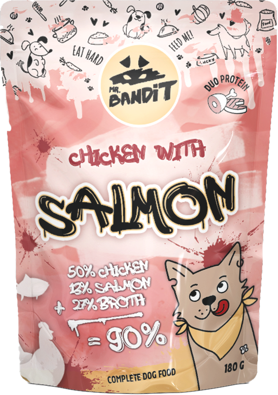 Hrana umedă pentru câini Mr. Bandit DuoProtein, pui și somon, 180g