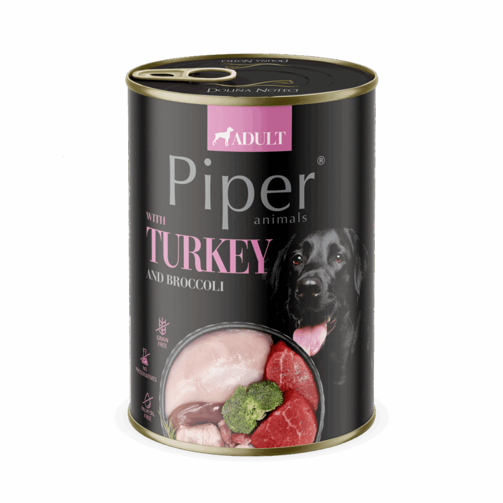 Hrana umeda pentru caini PIPER DOG, curcan si brocolli, 400g