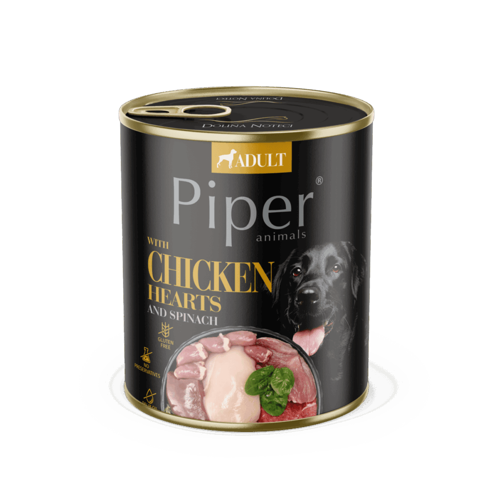 Hrana umedă pentru câini PIPER DOG - Inimi de pui și spanac 800g
