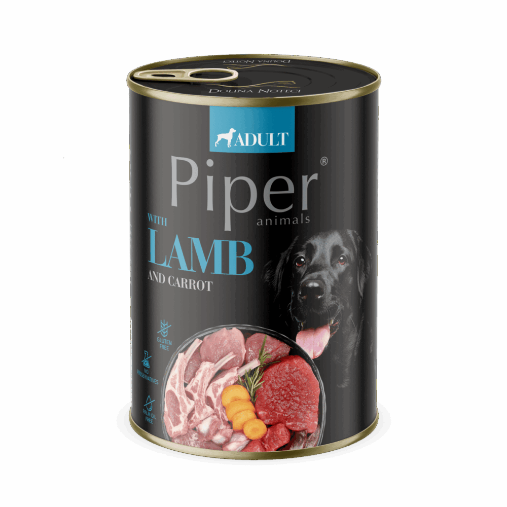 Hrana umeda pentru caini PIPER DOG, miel si morcov 400g