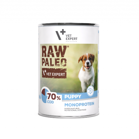 Hrana umeda pentru caini, puppy, RAW PALEO, cod, 400 g