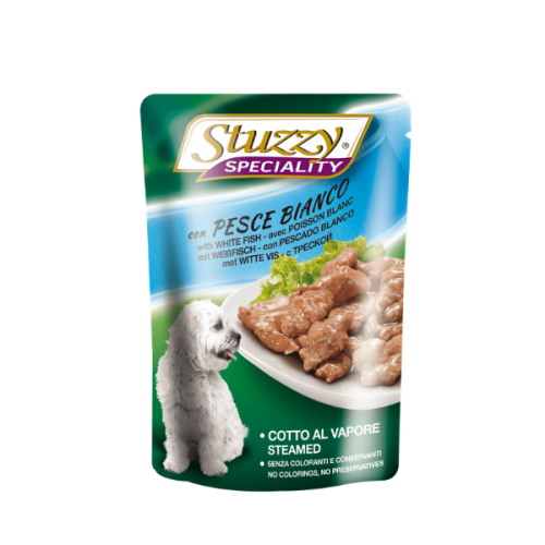 Hrana umedă pentru câini Stuzzy Adult cu pește alb oferă o combinație unică de ingrediente de înaltă calitate, fiind ideală pentru câinii cu apetit capricios. Conținutul de 45% ingrediente de origine animală garantează un aport nutritiv optim, susținând sănătatea și vitalitatea animalului. Procesul de gătire la abur păstrează savoarea naturală a ingredientelor, asigurând nu doar o digestie superioară, ci și o acceptare ușoară pentru câini. Această hrană este perfectă pentru acei câini care se confruntă cu probleme de apetit, oferind un gust atrăgător și o varietate de texturi.