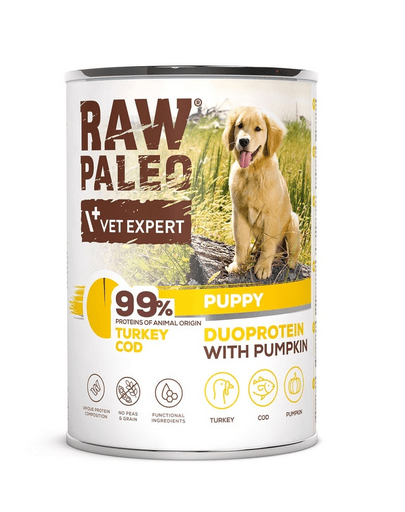 Hrana umeda RAW PALEO Turkey Cod Puppy 400g cod si curcan pentru catelusi