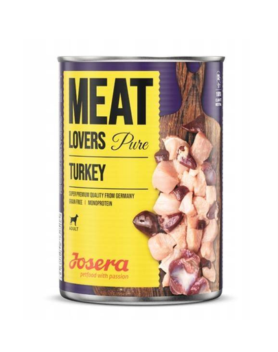 Cu JOSERA Meatlovers Pure Conserva hrana câini cu curcan, fiecare porție se transformă într-o experiență plină de savoare care contribuie la bunăstarea prietenului patrupezi.