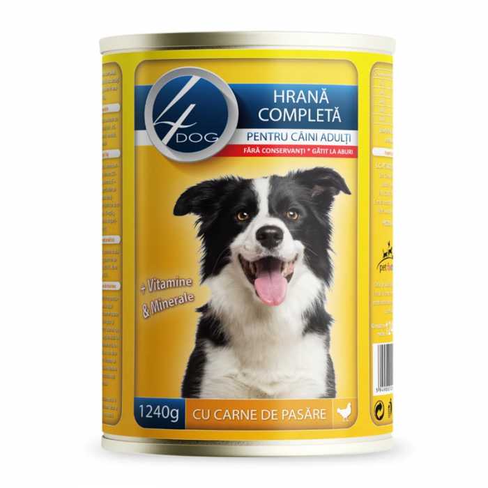 Set 12 buc x 1240 gr Conserve pentru caini 4Dog cu pui