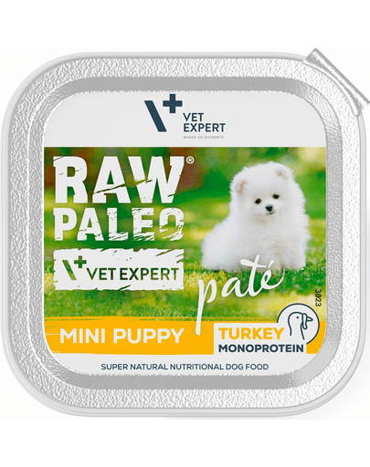 VETEXPERT RAW PALEO Pate Puppy Mini Turkey 150 g pateu pentru catei, cu curcan