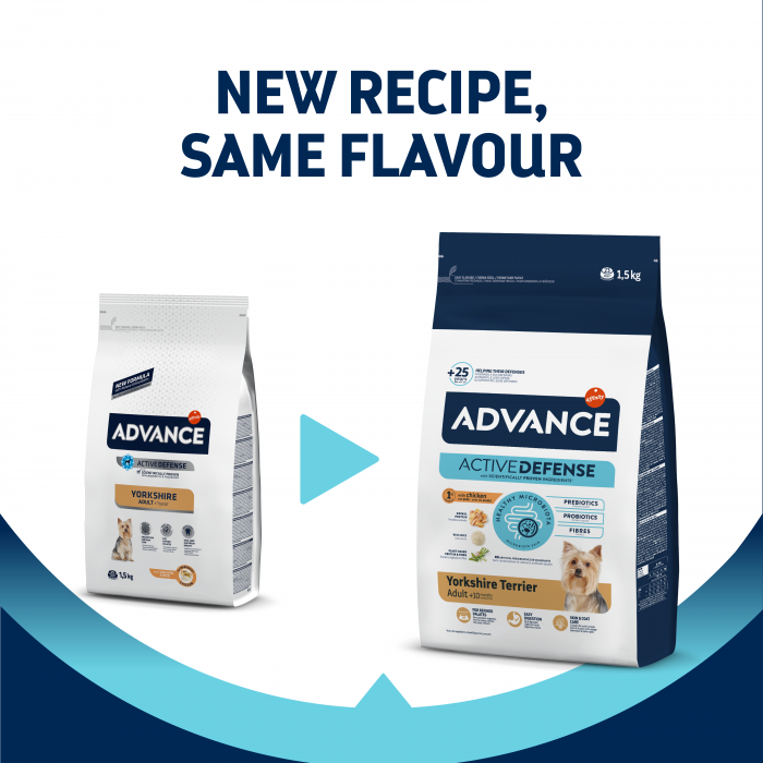 Hrana uscată Advance Dog Yorkshire Terrier nu numai că oferă o nutriție superioară, dar își propune și să răspundă celor mai exigente cerințe gustative ale câinilor din această rasă mică. Crochetele special formulate au o textură crocantă, ce ajută la igiena orală, reducând formarea tartrului și păstrând dinții sănătoși. Proprietarii de Yorkshire Terrier cares sănătos și fericit trebuie să se concentreze pe o alimentație care să le placă, iar această hrană se dovedește a fi atrăgătoare chiar și pentru cei mai mofturoși câini.
