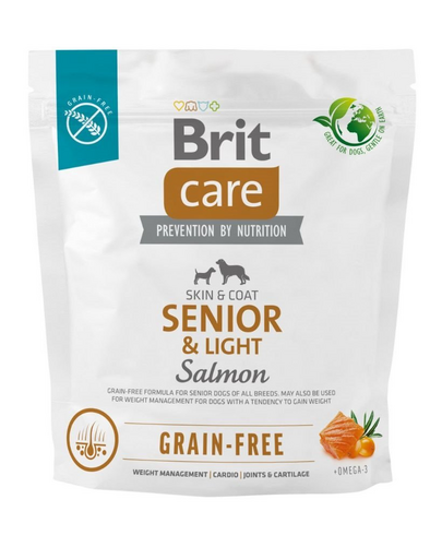 BRIT Care Grain-free Senior&Light 1 kg Hrana caini seniori cu tendinta de ingrasare, cu somon si cartofi