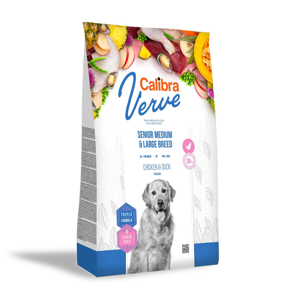 CALIBRA Verve GF Senior, M-XL, Pui și Rață, hrană uscată fără cereale câini senior, 12kg