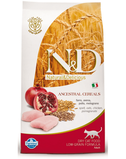 FARMINA N&D low grain chicken & pomegrante adult cat 0.3 kg Hrana pentru pisica, cu pui si rodie