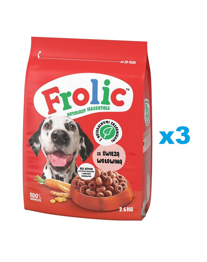 FROLIC Naturally Irresistible 3×2,6 kg hrana semi-umeda pentru caini, cu vita