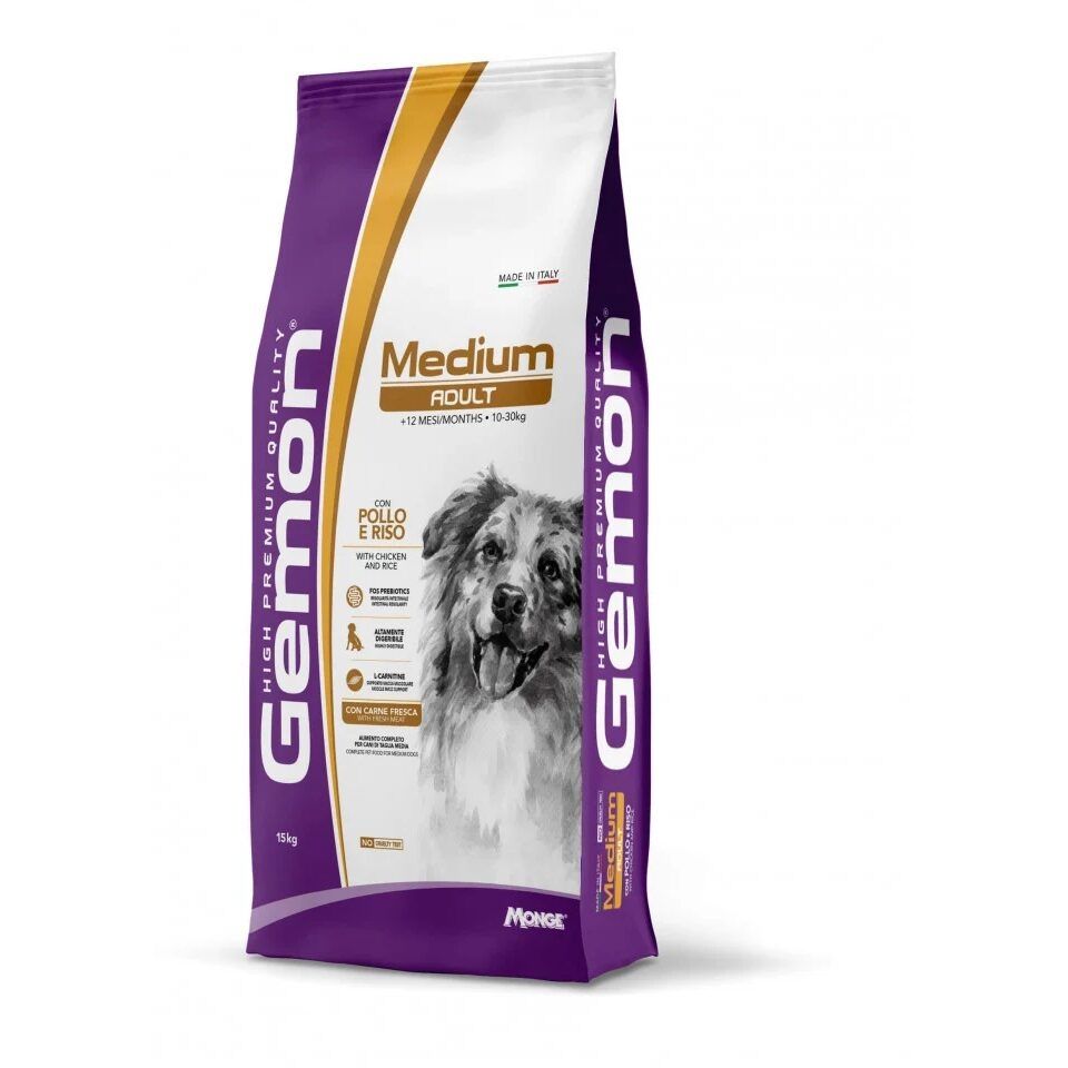 GEMON MEDIUM ADULT CU PUI SI OREZ este o hrana completa pentru animale de companie de talie medie, câini adulți. Formula este caracterizată de ingrediente de cea mai bună calitate, cum ar fi puiul, o sursă de nutrienți esențiali, iar orezul, o sursă de carbohidrați.nnReteta usor digerabil datorita procesului de extrudare.nO dietă echilibrată cu prebiotice, cu fructo-oligozaharide (FOS) și pulpa de sfeclă, sursă de fibre insolubile pentru a susține tractul intestinal.nContine carne proaspata pentru un gust optim și glucozamină și sulfat de condroitină pentru articulații și sistem osos.nContine si yucca pentru a limita mirosurile intestinale.nFara coloranti artificiali si conservanti adaugati.