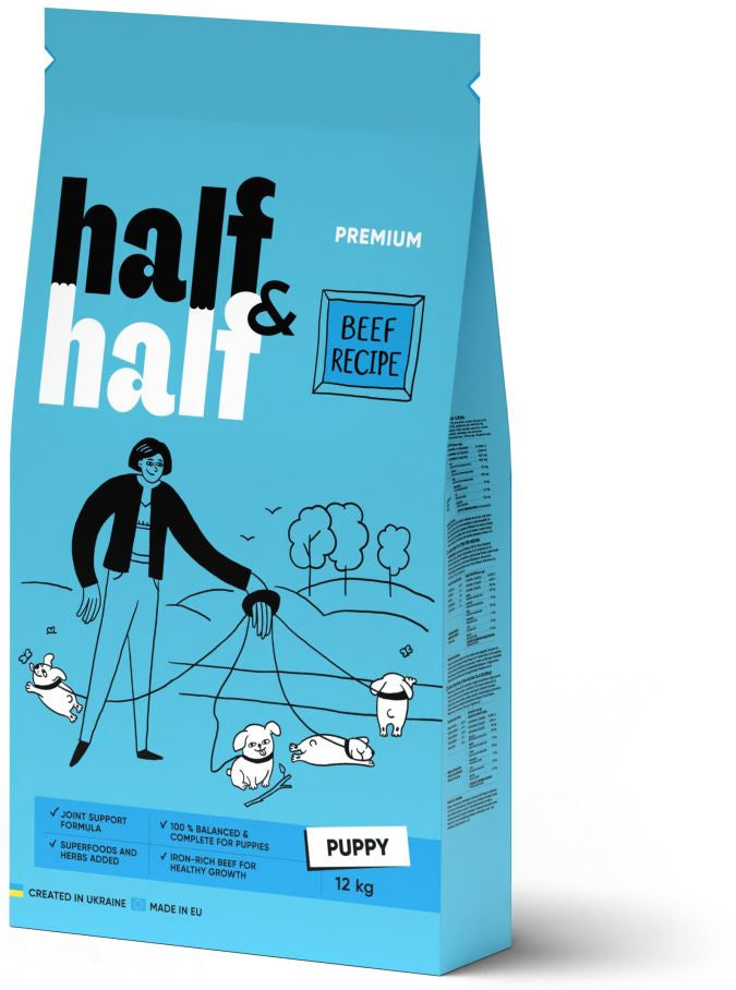 HALF&HALF Hrană uscată PUPPY, pentru căţei de toate rasele, cu Vită