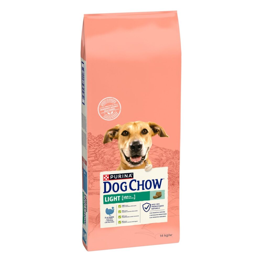 PURINA DOG CHOW LIGHT cu Curcan este o hrana completa pentru cainii adulti care sustine sanatatea digestiva cu ingrediente naturale selectionate si toti nutrientii esentiali de care are nevoie cainele tau activ.Fara coloranti artificiali, arome artificiale sau conservanti adaugatiForma si marime duala a buletelor, pentru o mestecare mai lentaNUTRItIE INSPIRATa DE NATURa. Hrana 100% completa si echilibrata creata special pentru cainele tau adult in timpul perioadei de gestionare a greutatii. Cu ingrediente naturale selectionate si fara coloranti artificiali, arome artificiale sau conservanti adaugati.DIGESTIE SaNaTOASa sustinuta de NaturiumTM, o combinatie specifica de fibre din surse naturale si un prebiotic naturalHrana cu Continut redus de grasimi. Contine cu 20% mai putine grasimi (vs adult) pentru managementul unei greutati sanatoase.MENTINE CONDITIA FIZICA OPTIMA. Echilibrul correct dintre proteine si grasimi pentru sustinerea unei conditii fizice optime in timpul perioadelor de management al greutatii.SCAUNE FERME: cu pulpa de sfecla care ajuta la imbunatatirea calitatii scaunelor si la reglarea tranzitului intestinal. Cainii care au un apetit sanatos, chiar daca au o viata activa, pot fi predispusi la cresterea in greutate. De aceea hrana noastra adaptata PURINA DOG CHOW Light ii ofera toti nutrientii de care are nevoie. Este creata cu un nivel redus de grasimi pentru a-i asigura cainelui tau o conditie fizica ideala, astfel incat sa fie in forma si pregatit pentru a explora lumea! in plus, este formulata cu ingrediente naturale selectionate si prebiotice naturale pentru a sustine sanatatea digestiva. si toate acestea fara a contine coloranti artificiali, arome artificiale sau conservanti adaugati.