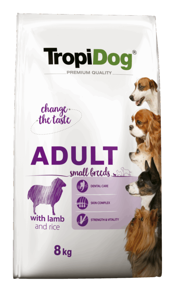 Hrana uscata pentru caini TropiDog, Premium Adult, tale mica, miel & orez, 8kg