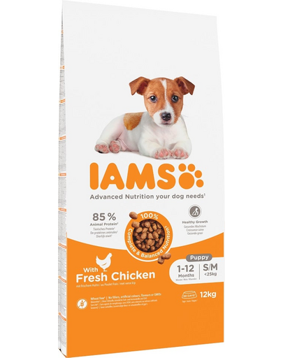 IAMS Advanced Nutrition Puppy Junior Small Medium Chicken 12kg hrana cu pui pentru catei