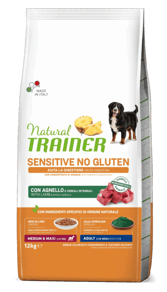 Hrana Uscata Caini, Natural Trainer, Sensitive No Gluten Medium-Maxi Adult, Miel, 12 kg