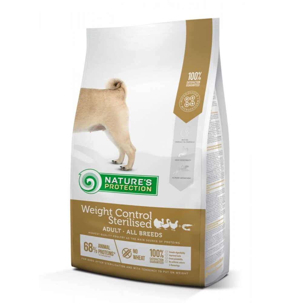 NATURES PROTECTION Adult Weight Control Sterilised, Pasăre cu Krill, hrană uscată câini, controlul greutății, 12kg