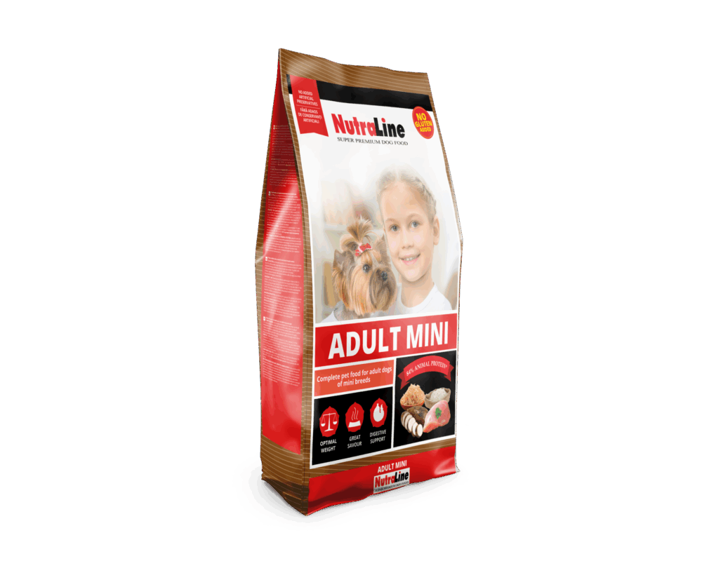Nutraline Dog Adult Mini 8 kg Hrană uscată Super Premium pentru caini adulti de talie mica cu carne de pui. *Carnea de pui oferă numeroase beneficii pentru câini, fiind o sursă excelentă de proteine de înaltă calitate, esențiale pentru dezvoltarea și menținerea masei musculare. De asemenea, carnea de pui conține vitamine și minerale importante, cum ar fi vitamina B12, seleniu, zinc și fier, care susțin funcționarea optimă a organismului. *Drojdia de bere, oferă câinilor numeroase beneficii, în special pentru piele și blană, dar și pentru sistemul digestiv. Este bogată în vitaminele B și alți nutrienți esențiali, contribuind la o blană sănătoasă și strălucitoare, la o piele sănătoasă și la o bună funcționare a sistemului digestiv. *Porumbul oferă carbohidrați ușor de digerat, esențiali pentru energia câinelui. * Orezul este ușor de digerat, ceea ce îl face potrivit pentru câinii cu probleme digestive. *Textura si dimensiunile crochetelor favorizeaza masticatia si asigura periajul dintilor. Recomandari Hranire: Hrana se servește uscată sau ușor umezită. Apa proaspătă trebuie să fie disponibilă permanent la discreția animalului. Introduceți noul produs în alimentație treptat, în cel puțin 5 zile, crescănd zilnic doza zilnică până la recomandarea finală de hrănire. Cantitatea zilnică este orientativă și poate varia în funcție de activitatea zilnică a animalului, de starea fiziologică și de temperatura ambiantă. COMPOZIȚIE: carne deshidratată de pasăre 29%, porumb integral, orez integral 23%, grăsime de pasăre, mazăre galbenă, făină integrală de creveți krill de Antarctica 2%, pulpă de sfeclă uscată, semințe de in, drojdie de bere, minerale, lignoceluloză 1%, psyllium, inulină (extract natural din rădăcini de cicoare), glucozamină (250 mg/kg), manano-oligozaharide (200 mg/kg), sulfat de condroitină (100 mg/kg), extract de yucca, făină de gălbenele (sursă de luteină). 84% proteine de origine animală Energie metabolizabilă: 4072 kcal/kg