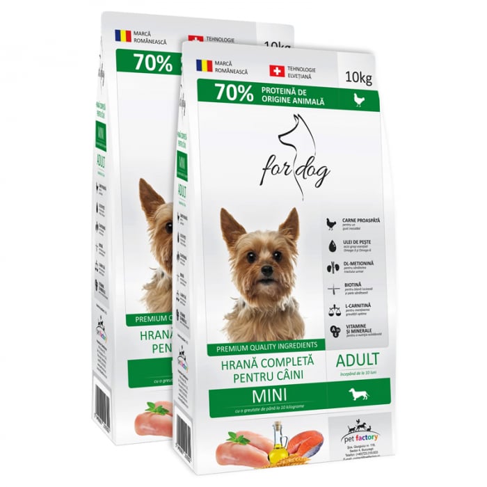 Oferta 2 saci x 10 kg Hrana uscata pentru caini 4Dog Mini Adult cu pui