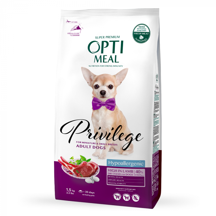 OPTIMEAL . Hrana uscata completa hipoalergenica pentru cainii adulti de rase mici si miniature cu continut ridicat de miel si orez BENEFICII: – Mielul, ca sursa de proteine , , hipoalergenice, reduce semnificativ probabilitatea dezvoltarii…