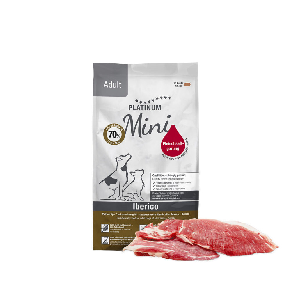 PLATINUM Adult Mini, XS-S, Iberico, hrană uscată fără cereale câini, semimoist, 900g