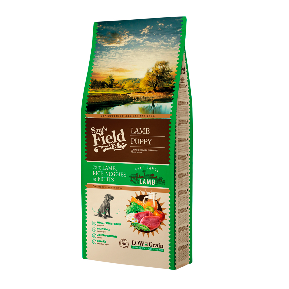 Hrana pentru câini Sam’s Field este formulată pentru a satisface cerințele nutriționale specifice ale câinilor, cu respectarea mărimii rasei, a stadiului de viață și a nevoilor alimentare în schimbare.Bogată în carne proaspătă și proteine animale, extracte de fructe și legume și alte ingrediente funcționale, compoziția unică promovează digestia corectă și utilizarea eficientă a nutrienților.Formulele Sam’s Field sunt sigure si ofera o nutriție de calitate pomovand o viață sanatoasa.Beneficii:Hrană completă pentru căței de toate rasele (până la vârsta de 12 luni), potrivită și pentru cățelele gestante și care alăpteazăFormula Hipoalergenica,digestie usoaraProbiotice si fibre ce intaresc sistemul imunitarSubstante condroprotectoare pentru ingrijirea articulatiilorMojave Yucca -suport pentru digestie.Compoziție: miel crescut în aer liber (30%), orez (30%), grăsime de vită și porc (10%), proteine hidrolizate de pasăre (8%), mazăre (6%), drojdie de bere (4%), pulpă de mere uscată (4%), dovleac (3%), ulei de somon (2%), ficat de pasăre hidrolizat (2%), spanac uscat (0,5%), făină de mazăre (0,401%), glucozamină (0,026%), sulfat de condroitin (0,02%) %), fructo-oligozaharide (0,02%), manan-oligozaharide (0,015%), yucca Mojave (0,01%), mușețel uscat (0,008%).Aditivi: vitamina A (3a672a) 20.000 UI, vitamina D3 (3a671) 1.500 UI, vitamina E (3a700) 500 mg, vitamina C (3a312) 260 mg, vitamina B1 (3a821) 6,5 mg, vitamina B2 (3a825i, vitamina B68) (3a831) 6 mg, vitamina B12 0,06 mg, niacinamidă (3a315) 28 mg, D-pantotenat de calciu (3a841) 15 mg, biotină (3a880) 0,85 mg, acid folic (3a316) 0,75 mg, clorură de colină (3a8890) (3a880) mg, cupru (3b406) 15 mg, zinc (3b606) 85 mg, fier (3b106) 70 mg, mangan (3b504) 35 mg, iod (3b201) 0,7 mg, seleniu (3b810) 0,2 mg.