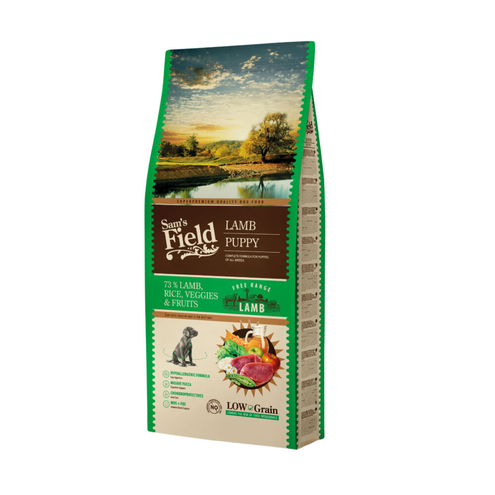 SAM’S FIELD Puppy, XS-XL, Miel, hrană uscată conținut redus cereale câini junior, 13kg