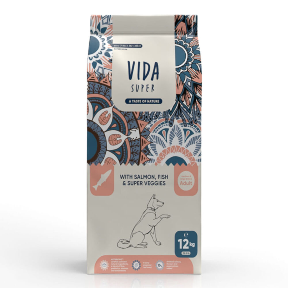 VIDA SUPER, M-XL, Somon, Pește și Legume, hrană uscată câini, 12kg