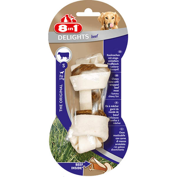 8in1 Os Delights Vită S Fabricat din piele de vită și carne de vită delicioasă și asigură o distracție intensă și de lungă durată. Recomandat cainilor de rasa mica cu o greutate intre 5 si 10 kg. Ajuta la imbunatatirea sanatatii dentare datorita acțiunii abrazive naturale a mestecarii, tartrul este îndepartat de pe dinții cainelui dvs. Sunt bogate în proteine și nu conțin coloranți și potențiatori de aromă artificiali. Caracteristici: Carne de vită delicioasă în interior; Ajuta la îmbunătățirea îngrijirii dentare; Conținut scăzut de grăsimi; Bogat în proteine; Fără coloranți și potențiatori de aromă artificiali. Recomandare de hranire: Alegeți o recompensa puțin mai mare decât gura animalului dvs. Oferiți întotdeauna apă proaspătă. Compozitie: piele de vită (64%), carne de vită (34%), glicerol, orez, amidon de tapioca, glucoză, sorbitol, clorură de sodiu. Constituenți analitici proteine: 86%, conținut de grăsimi: 2,5%, fibră brută: 1%, cenușă brută: 3,5%.