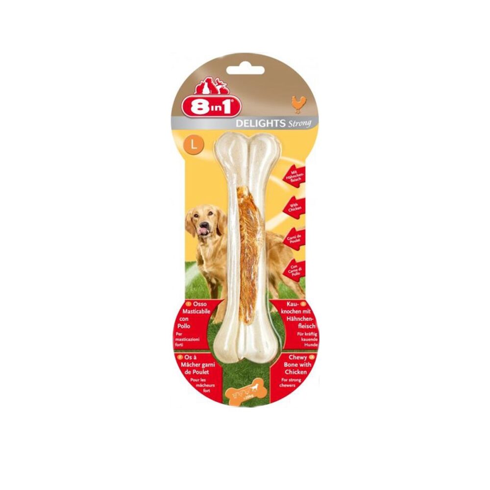 Os din piele presata si carne de pui care ofera o modalitate sanatoasa si distractiva de a recompensa cainele, curatandu-i in acalasi timp dintii si gingiile.· Nu contine coloranti artificiali sau potentiatori de gust.Dimensiuni: L/M/S/XS