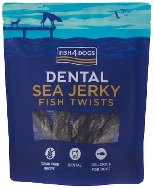 FISH4DOGS Dental Sea Recompensă pentru câini, rulou răsucit din piele de peşte alb 100gHrană complementară pentru câini adulţi.Realizate din piele de peşte 100%, aceste delicii naturale cu un conţinut scăzut de calorii au o textură aspră care nu numai că ajută la îndepărtarea tartrului de pe dinţii câinelui tău, dar au şi un gust pe care câinii îl adoră. Fiecare snack are o dimensiune de aproximativ 13cm. Sea Jerky Fish Twists sunt recompense de mestecat din bucăţi răsucite din piele de peşte care pot fi ţinute cu labele, nu conţin aditivi sau conservanţi şi sunt bogate în acizi graşi Omega 3.COMPOZIȚIE: piele de peşte alb. CONSTITUENȚI ANALITICI: proteine 79%, cenuşă brută 10%, conţinut de grăsimi 2,4%, fibre brute 0,6%, acizi graşi Omega 3 0,3%. Energie metabolizabilă: 1130 kcal/kg.INDICAȚII DE HRĂNIRE ŞI CONDIȚII DE PĂSTRARE: oferiţi ca recompensă. Cantităţile zilnice recomandate sunt orientative. Supravegheaţi întotdeauna câinele atunci când îl hrăniţi. Asiguraţi câinelui permanent apă proaspătă de băut. Produsul nu este destinat consumului uman. După desigilare, păstraţi punga închisă. A se păstra într-un loc uscat şi răcoros. CANTITATEA ZILNICĂ RECOMANDATĂ: Greutatea câinelui (kg) = Snacks-uri (bucăţi)11-20 kg = 2-3 snackuri21-30 kg = 3-4 snackuri31-40 kg = 4-5 snackuri