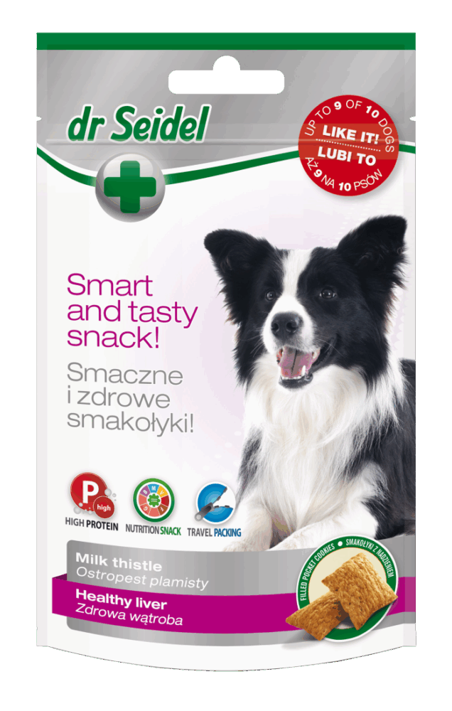 Un tratament pentru câini cu un conținut ridicat de ciulin de lapte, o sursă de silimarină. Silimarina are un efect pozitiv asupra activității și regenerării naturale a ficatului, facilitează și digestia.RecomandareGustările Dr Seidel sunt perfecte ca gustări între mese sau recompense de antrenament. Recomandat în special în timpul convalescenței după boli hepaticeSubstante active1 gustare contine: ciulin de lapte – 574,2 mgIngredientetescovină din semințele de ciulin de lapte (o sursă de silimarină), făină de porumb, drojdie de bere, grăsimi animale, proteine animale procesate, proteine animale hidrolizate