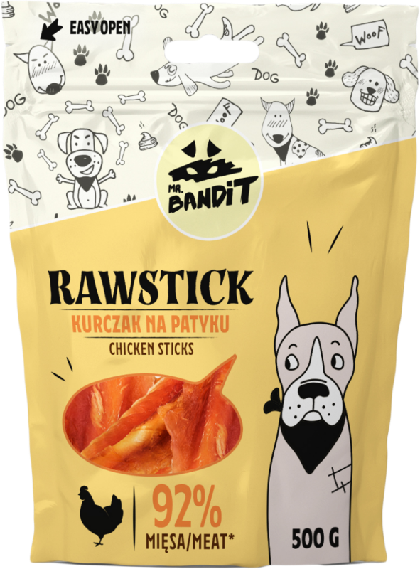Recompensele Mr. Bandit sunt gustari delicioase si sanatoase, chiar si pentru cei mai mofturosi caini.nSe recomanda administrarea intre mese pentru a oferi blanosului un aport de energie si distractie.nGustarile nu trebuie sa depaseasca 15% din portia zilnica de hrana a animalului.nProdusul nu inlocuieste hrana zilnica.nCainele trebuie sa aiba in permanenta apa proaspata pentru baut.nnCompozitie: Betisoare din piele vita (21%) piept pui/ rata, glicerina, conservanti. Proteine: 45- 57%, Grasime 3%, Fibre 0.2%, Cenusa 4%, Umiditate 23%.