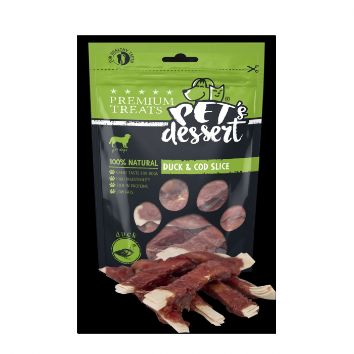 Pet s Desert, Recompense pentru caini, Dog DuckCod Slice LSD-12, 80g